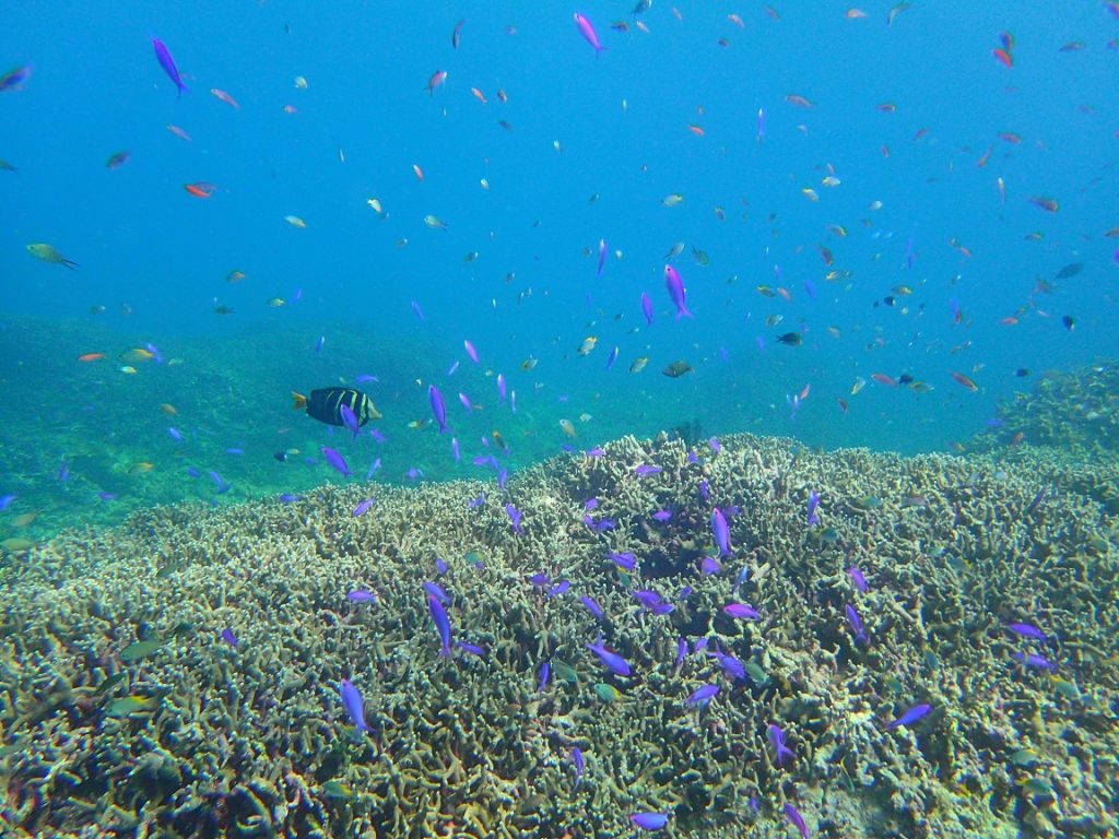 ただ、潮当たりが良いので、グルクンやカスミチョウチョウウオ、ハナゴイたちが群れていたり~