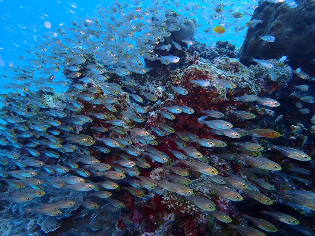 小さめの子から、まるで岩のようにドーン!!っとたたずむ、巨大なアオウミガメ。微動だにしないくらい落ち着いた様子でした