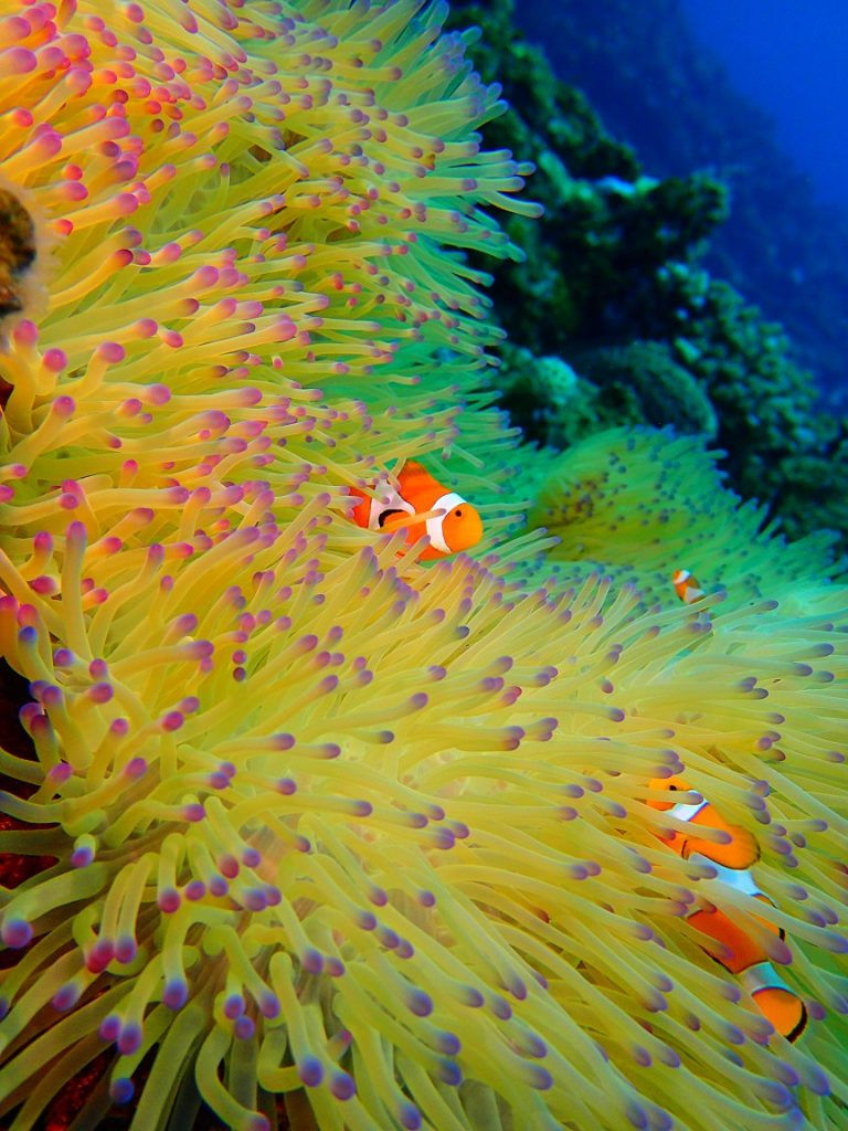 そっぽ向いて、それぞれが我が道をゆくハナビラクマノミのカップル![]()