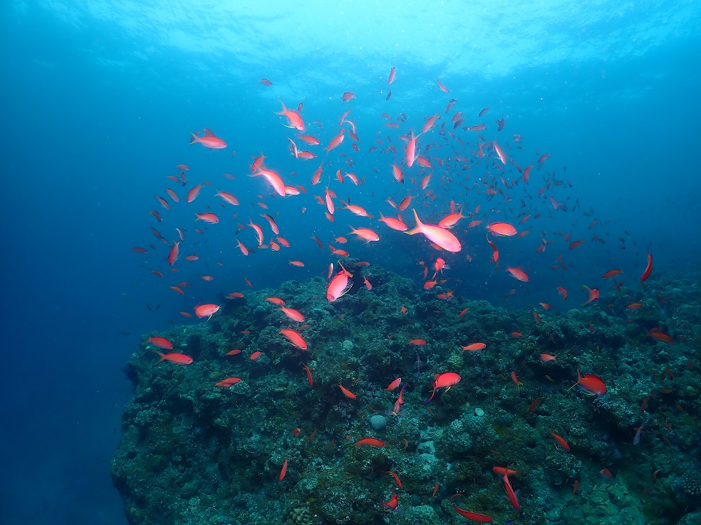 サンゴの上は、スズメダイがわっさわさ~(≧▽≦)![]()