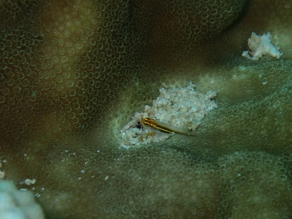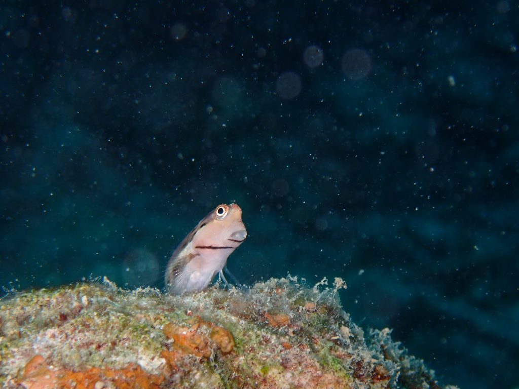 あまりの大きさに、イシガキカエルウオも凝視👀