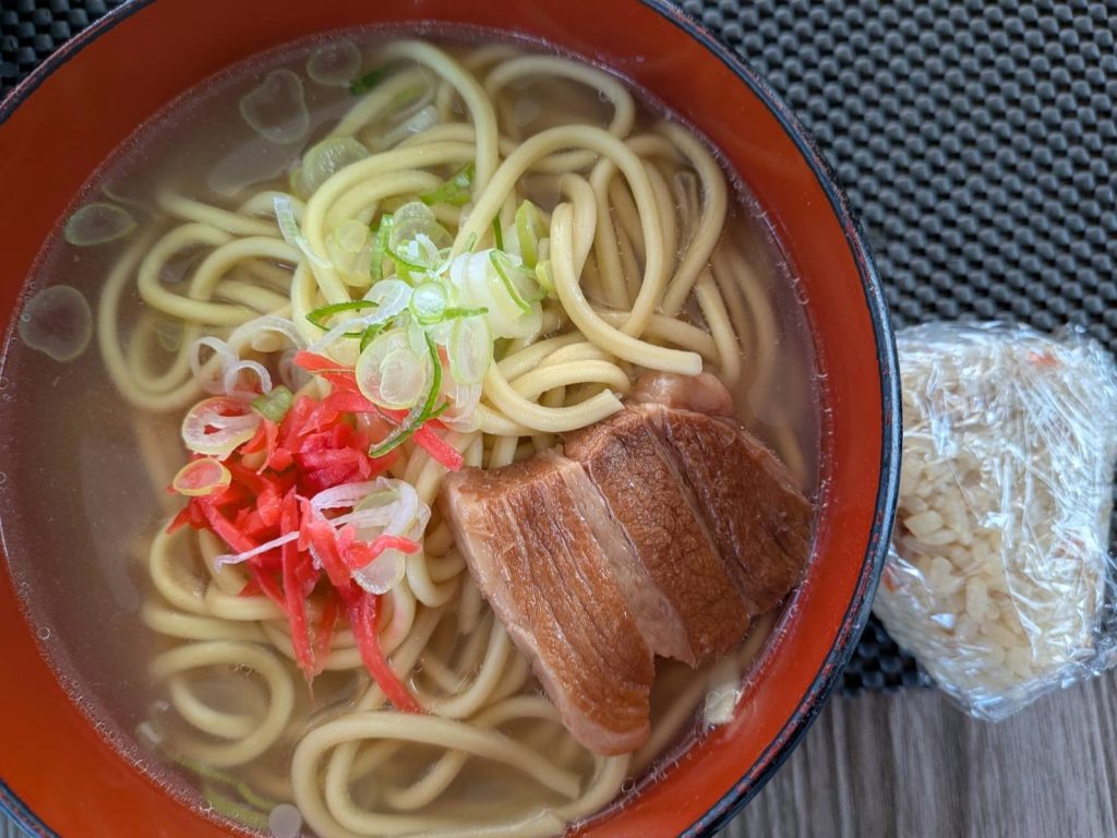 今日は、豚三枚肉そば&じゅーしーおにぎりでした!