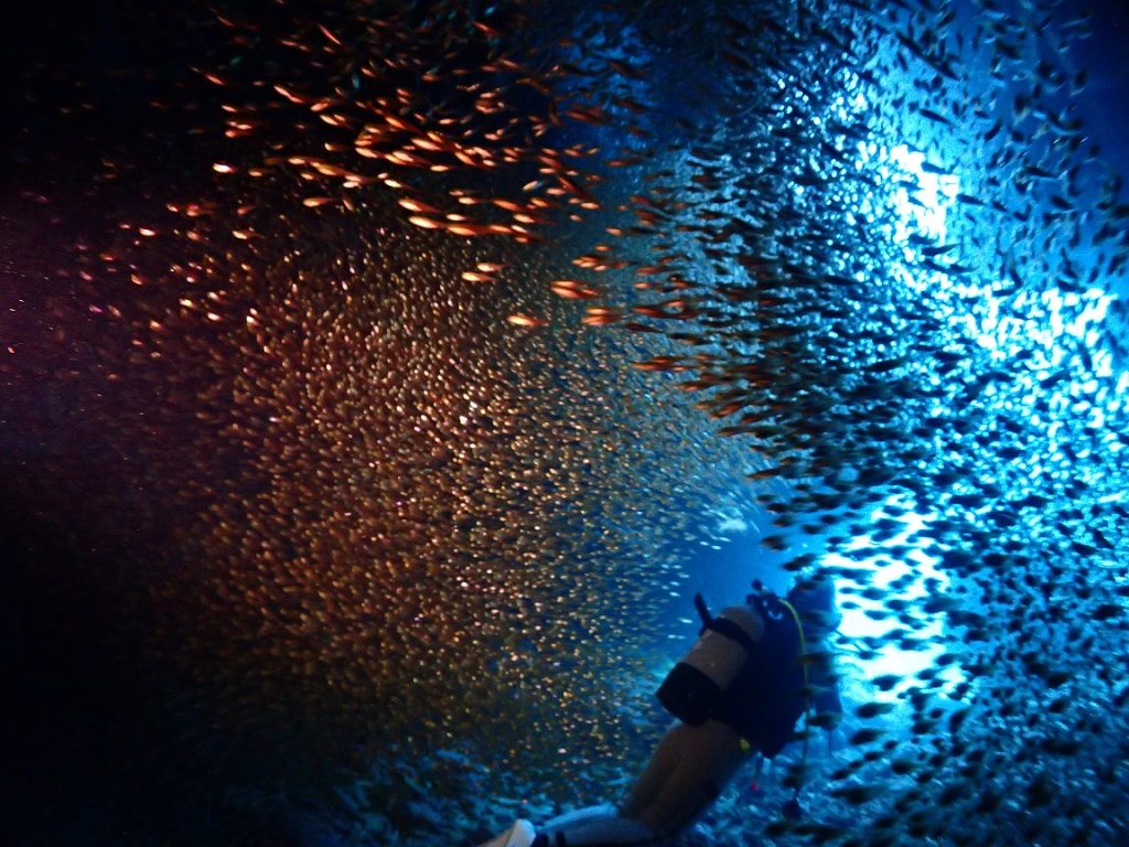 アーチの中で、巨大生物のように動めくキンメモドキも!!
