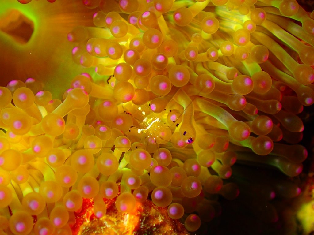 粒々のイソギンチャクがこれまたキュートなお家にイソギンチャクエビ。