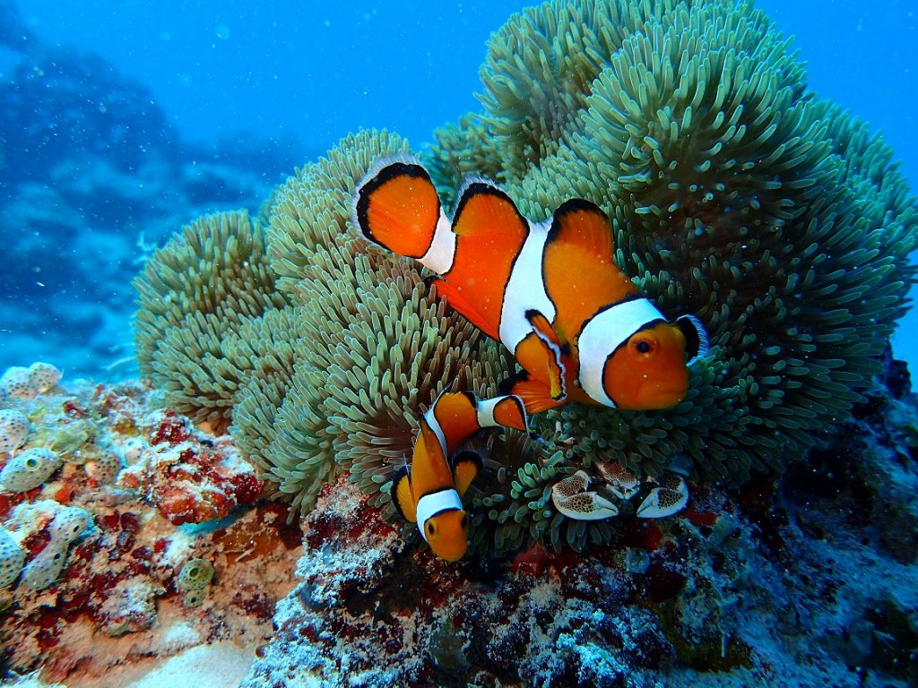さて、名物の隠れられないカクレクマノミをどう撮るか・・・