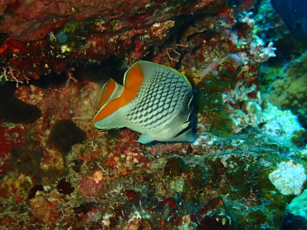 あら!新人さんかしら!アミメチョウチョウウオの子供。