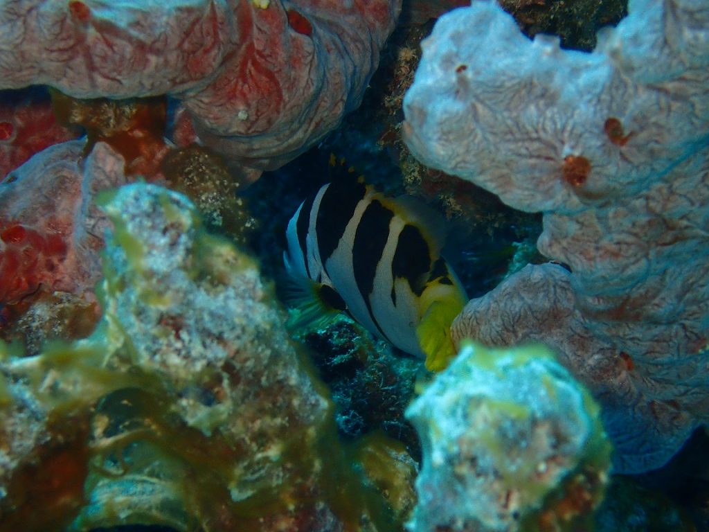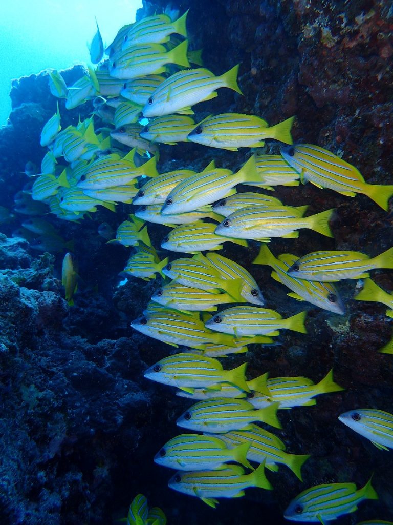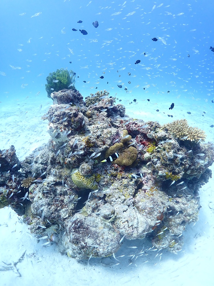 スズメダイ達が集まっている所が岩の上のあたりだったので、見たいけど流れもあるし・・・