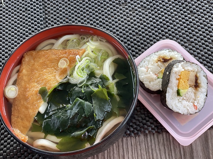 今日のランチは、「きつねうどんと上巻き寿司」でした。