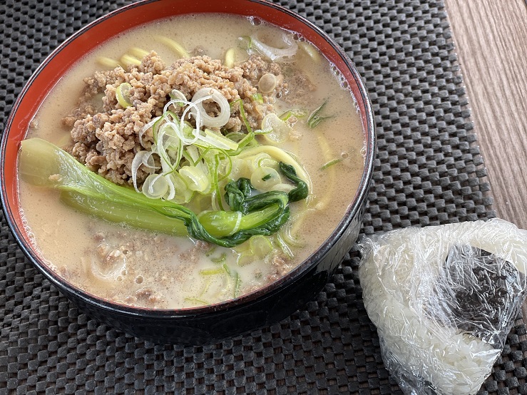 本日のランチは「沖縄坦々そばと海苔おにぎり」でした。