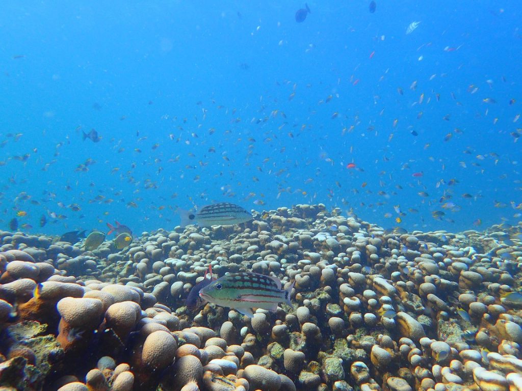 他の小魚も多いので、何匹ものアミメフエダイがハンティングにやってきてた!