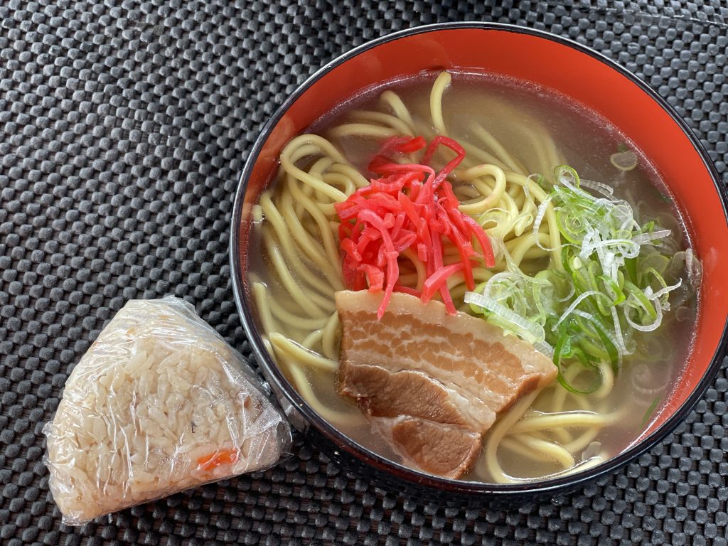 今日は、豚三枚肉そば&じゅーしーおにぎりでした!