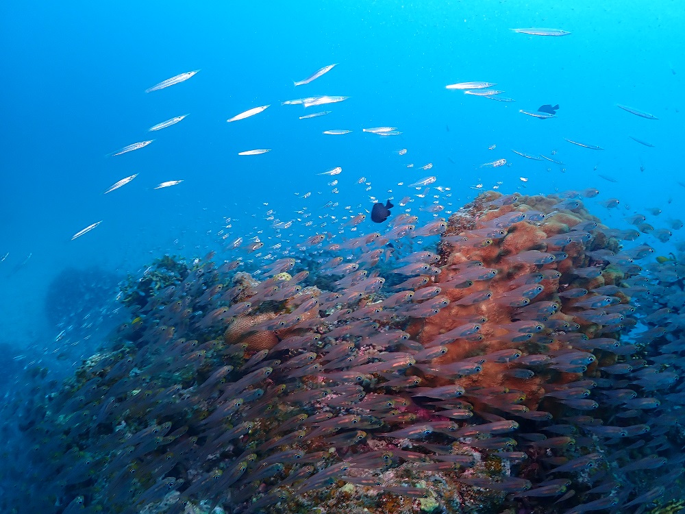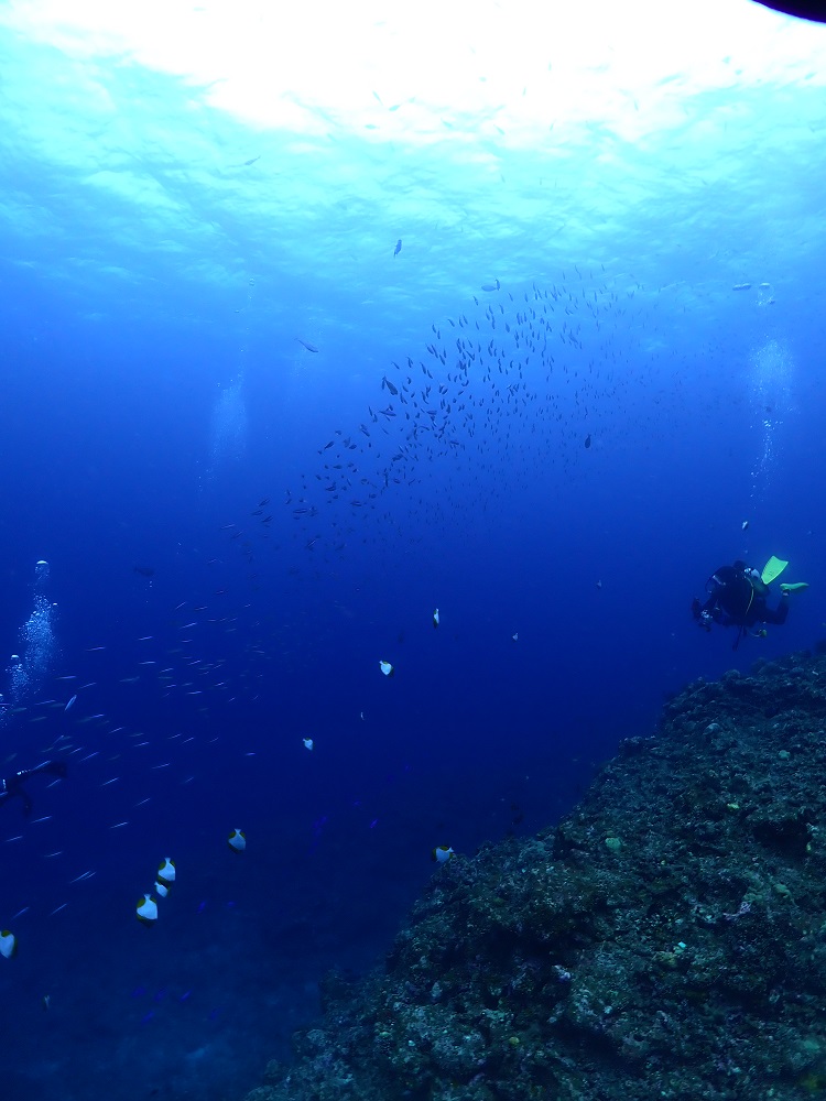 まだ水温が高いのでイソマグロはちょろっとでしたが、グルクンやカスミチョチョウウオが