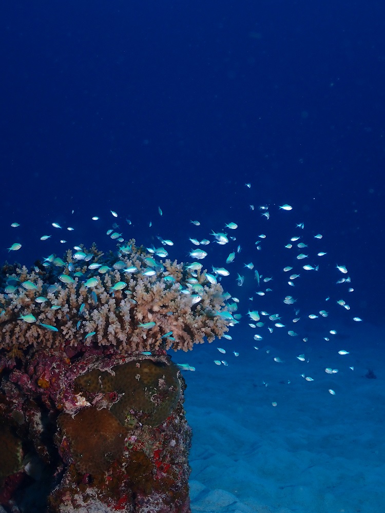 水中は満点の星空のように、スカシテンジクダイがキラキラやで!