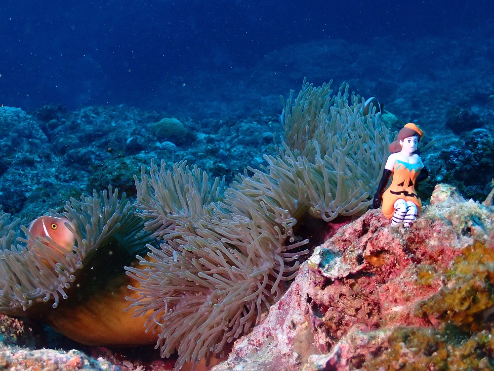っと、イソギンチャクの影から見つめるハナビラクマノミの先に・・・