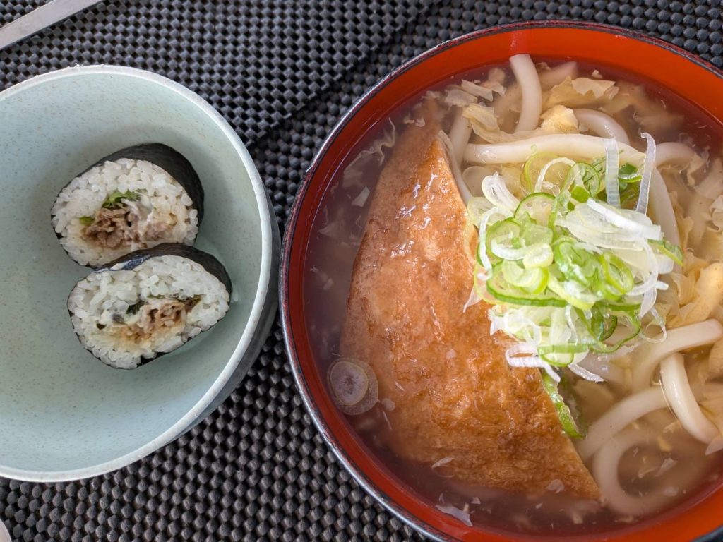 今日は、鶏卵きつねうどん&牛サラダ巻き寿司でした!