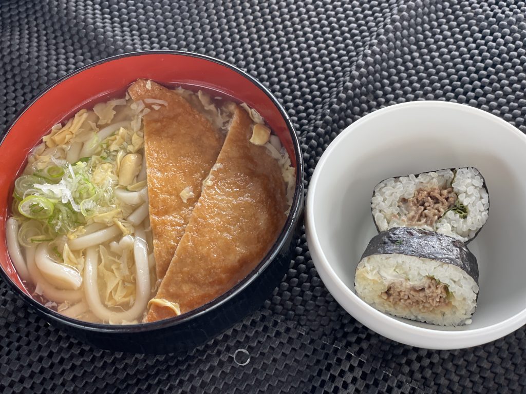 今日は、鶏卵きつねうどん&牛サラダ巻き寿司でした!