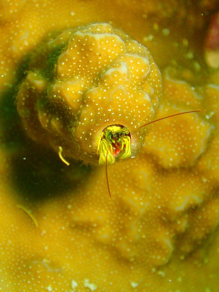 触角をブンブン振り回してご飯をGETしていたカンザシヤドカリ。