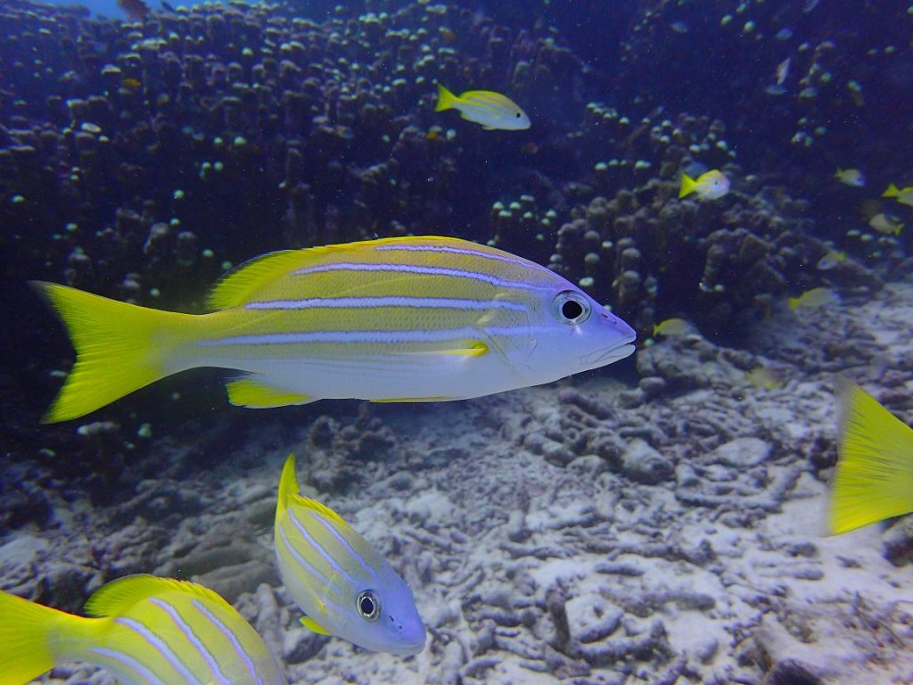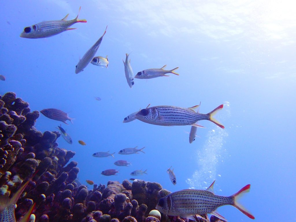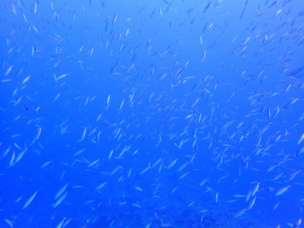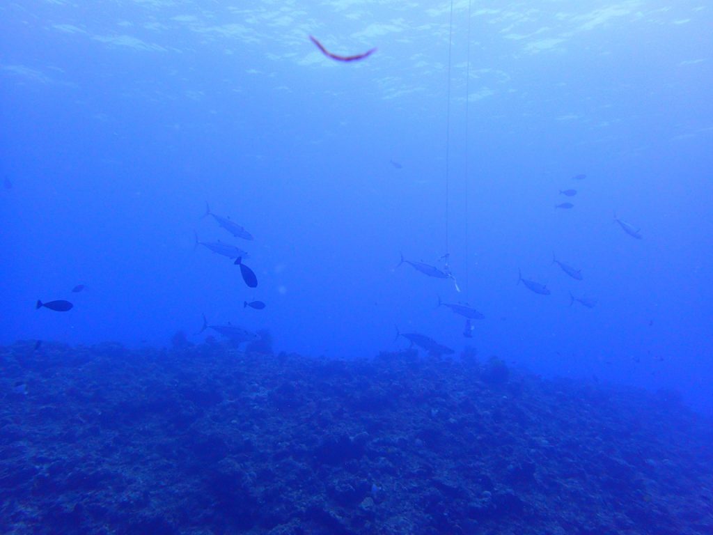 グルクンの群れの周りをイソマグロの中くらいサイズが群れて回遊していたり・・・