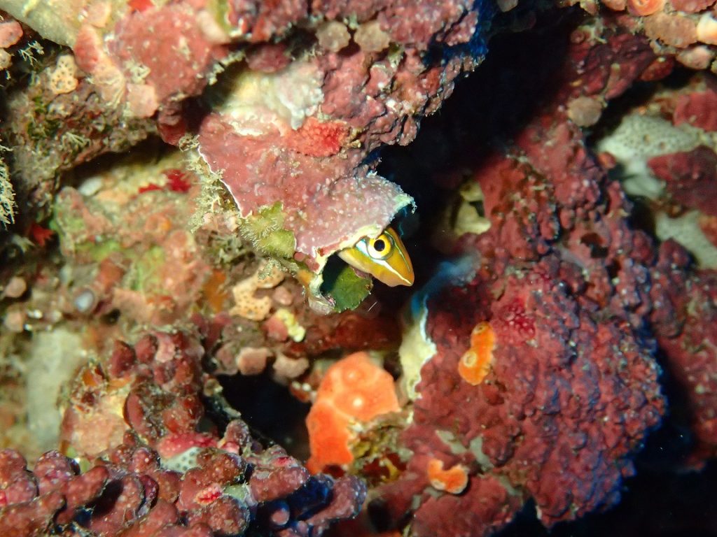 ナマコに乗っていたりカメ吉に乗っていたりとユニークな登場を見せてくれたイシガキカエルウオ。