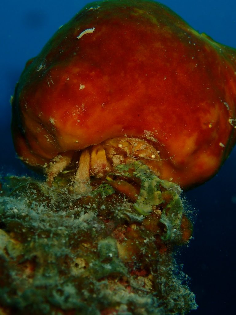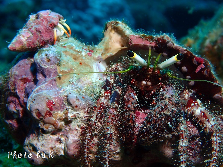 やたらと大きなヤドカリがいるな~っと思ってみていたら、小さな貝がくっついていたのです。