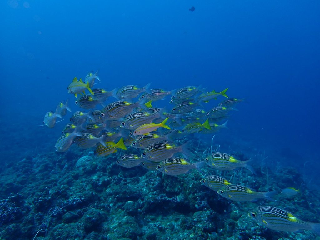 ノコギリダイに混ざっているアカヒメジの子供が色鮮やかでめっちゃ目立ってたな~(笑)