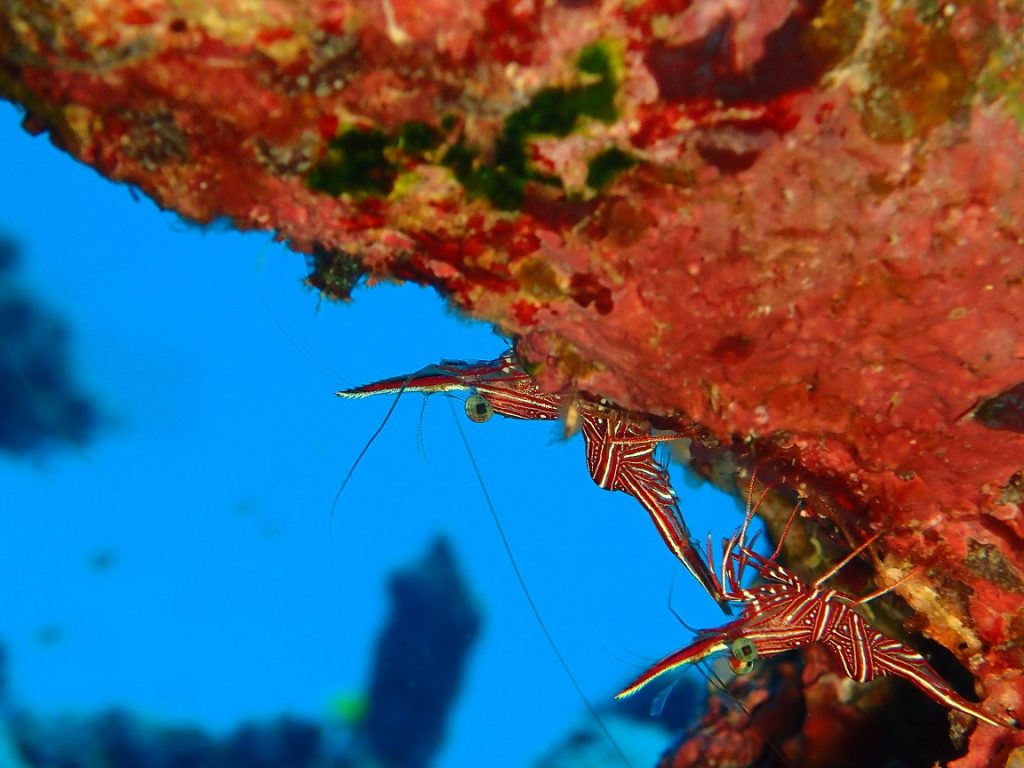 赤いスザクサラサエビと青い海との組み合わせ~♪