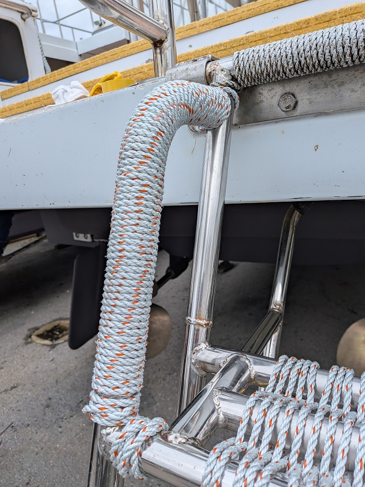 1年でロープが切れてくる場所もあるので、所々新しいロープに張り直しました。