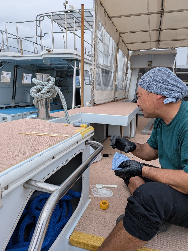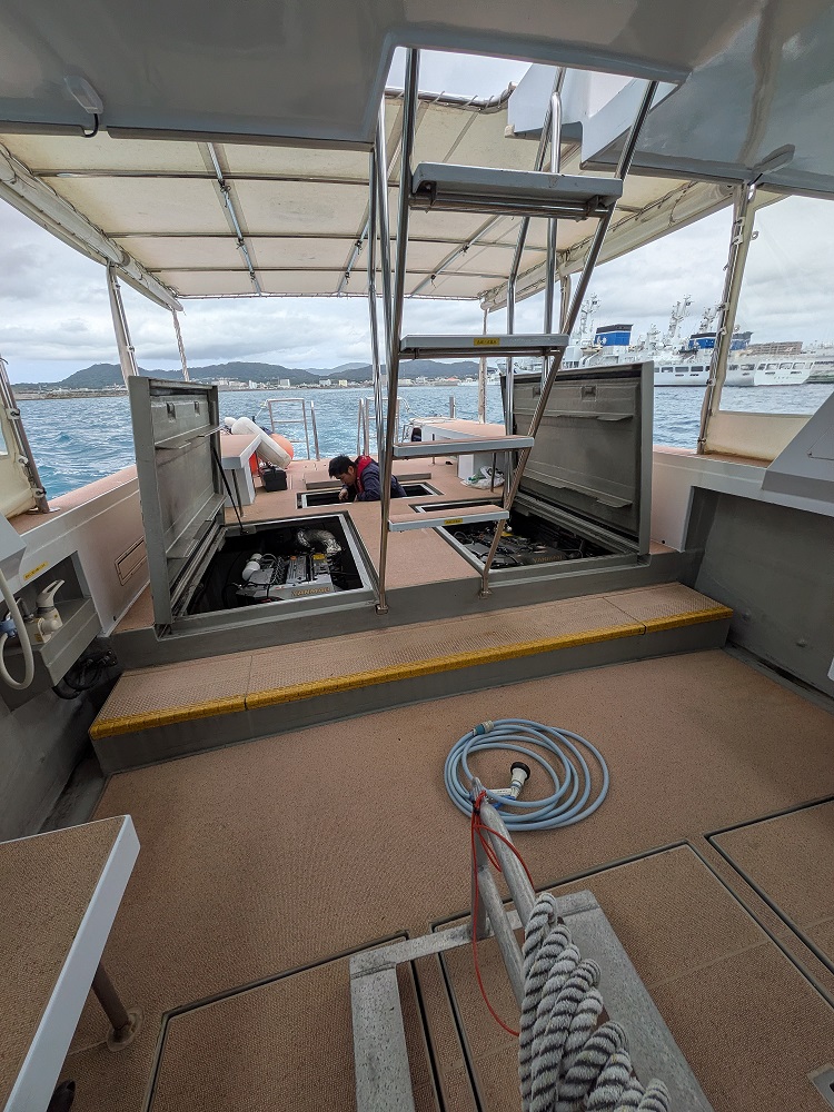 船をおろした後、しばらく船を走らせて、エンジニアさんに異常がないか確認してもらいました。