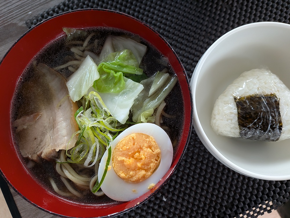 「特製炭ラーメンと海苔おにぎり」でした。今まで登場したことのないメニュー!