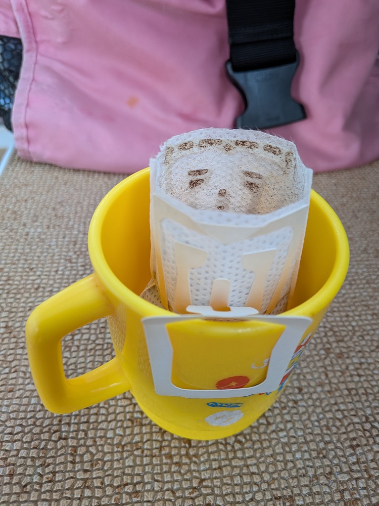 休憩中、ドリップコーヒーを開けたら、中から切ない顔をして見つめられた黒スケです(笑)