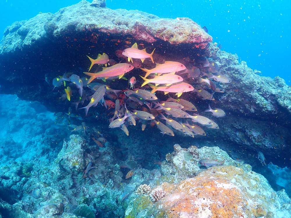 潜れなくはないけど、浅瀬は底揺れ確定なくらいはあったので、明日に期待して今日はウネリがない場所へ行きましょう~!