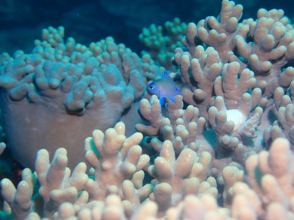 あら、可愛い子ちゃんがサンゴの隙間にいるじゃない♪