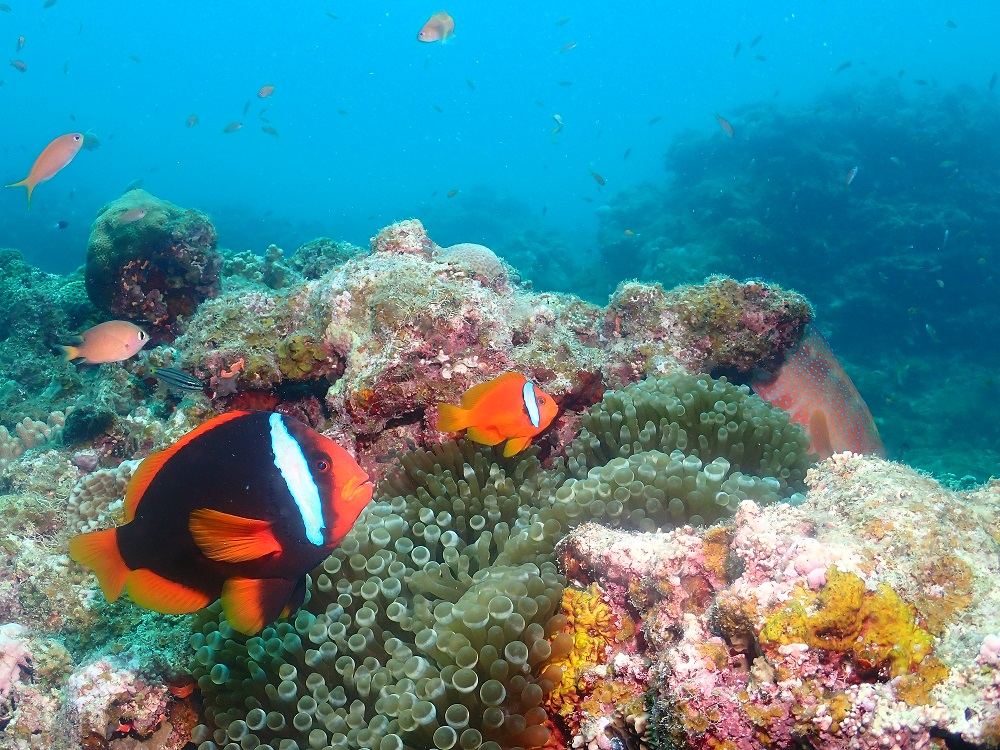 南はウネリが残っているし、サンゴのリクエストもあったので離島のサンゴエリアへ行こうと思ったら、北からも変なウネリが・・・(〇□〇)なんでやね~ん!