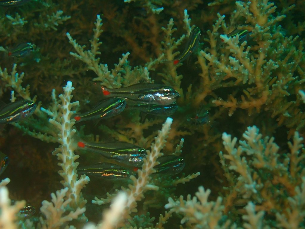 大物も来るかー!?っと思ったけど・・・来ずだったので、水深を上げて浅瀬のサンゴ畑へ!