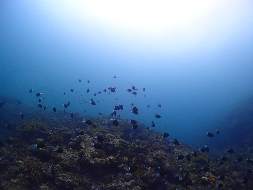 沖合の流れが当たっているリーフは、アマミスズメダイとグルクンの群れが今日は特に良かった!!