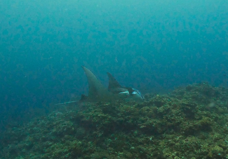 透明度はモンワリの中でしたが、通りすがりマンタが頭上通過の大接近!!