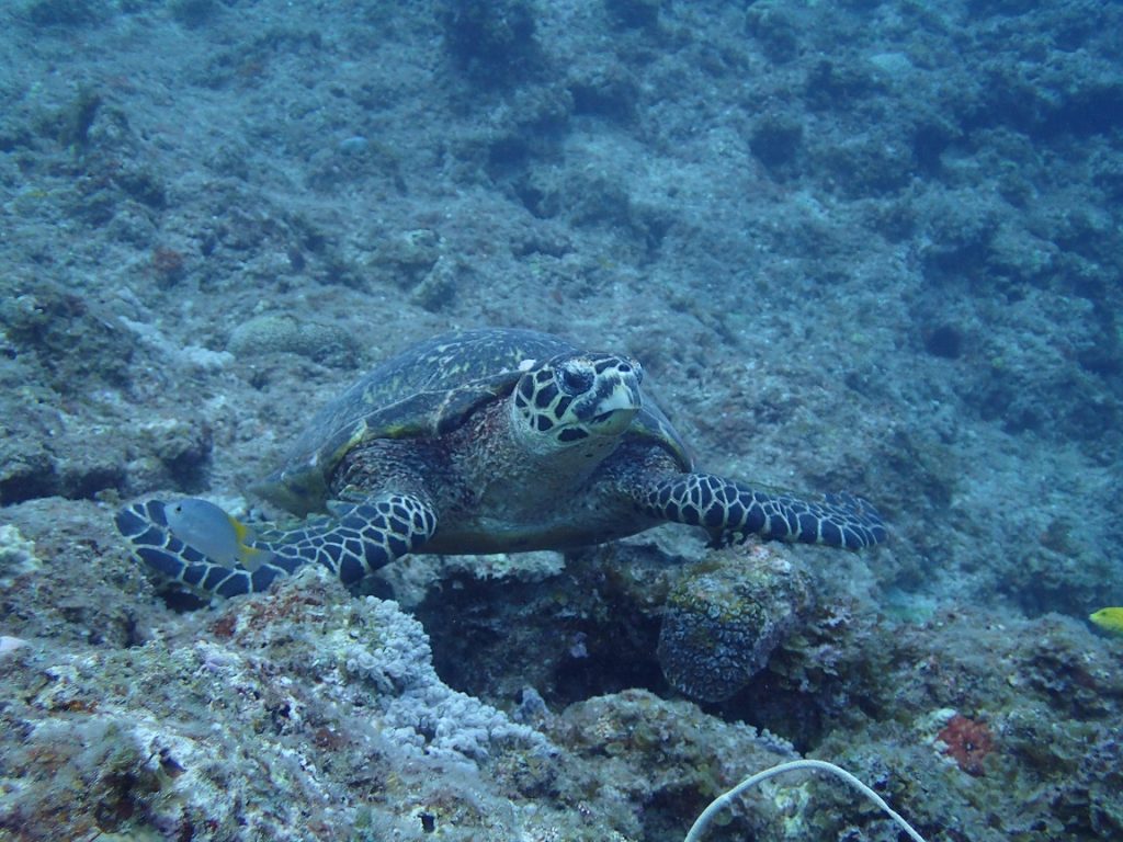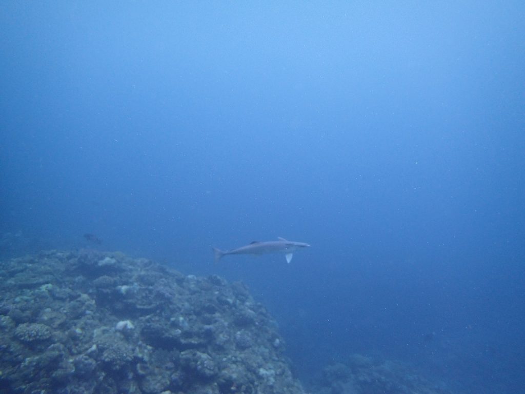 マンタが通り過ぎたと思ったら、その後遅れて泳いでいたコバンザメ。